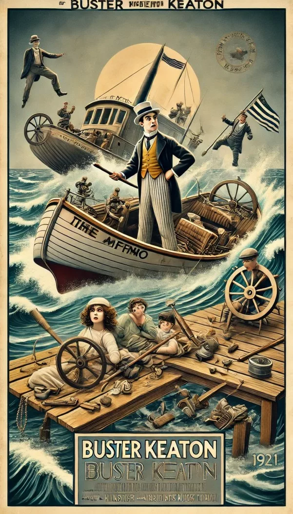 The humor in “The Boat” comes from Keaton’s trademark physical comedy and deadpan expressions as he encounters one disaster after another. From turbulent seas to mechanical failures, Buster faces each challenge with his usual determination and resourcefulness, though things rarely go as planned. The Damfino becomes both a source of frustration and comedy as the family struggles to survive their ill-fated voyage.